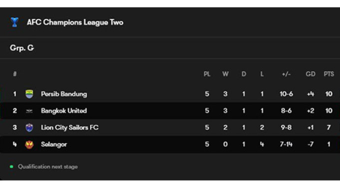 Setelah lima pertandingan, Persib dan Bangkok sama-sama mengoleksi 10 poin. Persib berhak berada di posisi pertama karena unggul head to head—berkat kemenangan 2-0 saat menjamu Bangkok di putaran pertama.
