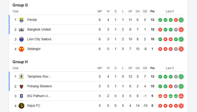 Catatan empat kemenangan, satu hasil imbang, dan satu kekalahan membawa Maung Bandung melaju dengan status terbaik di grup mereka. Bangkok United tetap menyusul sebagai runner-up dengan 10 poin.