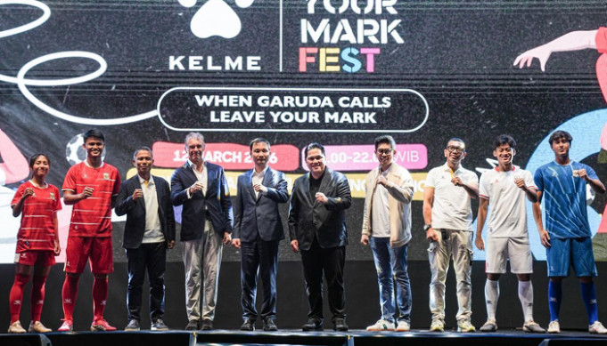 RBCOM - Jersey terbaru Timnas Indonesia hasil kolaborasi PSSI dan Kelme resmi diluncurkan di Plaza Utara Stadion GBK, Senayan, Jakarta, Kamis, 12 Maret 2026.